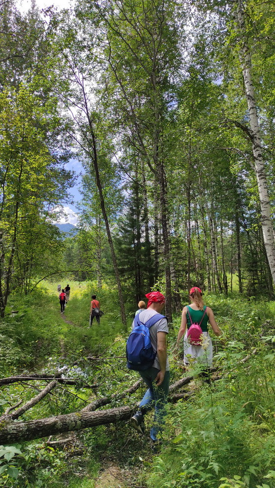 18:00, подъехал автобус, ребята оказались очень пунктуальные. На улице дождь, окна автобуса запотели, и потому красоты Байкальска особо рассмотреть не удалось. Но парнишка, который представился Кешей, рассказывал вдохновенно и последовательно, и потому определённый образ города и его жителей сложился. Визуализацией же недостающих в рассказе образов займёмся позже, в свободное от экскурсий время. Если кратко подытожить рассказ Кеши, то город Байкальск был образован в 60 годы при строительстве целлюлозного комбината, а при его закрытии в 2013г. все 17 000 жителей были брошены на выживание, так как другой работы в городе особо и не было. Кто-то уехал, а оставшиеся повернулись в сторону туризма, браконьерства и выращивания клубники. Да, именно её! Байкальск снабжает клубникой и себя, и окрестности, и Иркутск. Мы тоже вроде как успеем её отведать. Хорошее ожидание… Прокатившись по городу мы, две группы человек по 8, выдвинулись с сторону Байкала. К самой воде доехать на автобусе не удалось, пришлось минут 10 пройтись под дождем по грунтовой дороге. Дождевик в рюкзаке — это обязательный атрибут путешественника в данной местности. Погода может меняться очень быстро, но нам, ещё раз повторюсь, повезло с погодой на все 7 дней.