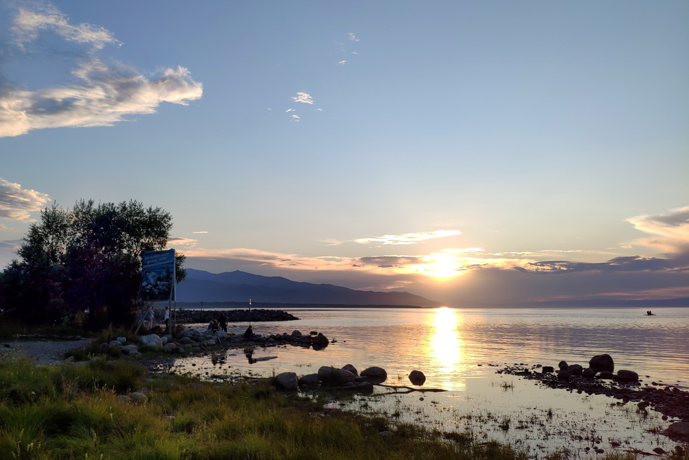 Потихоньку все разбрелись по берегу Байкала, пробовать воду, фотографироваться, одна дама даже искупалась. День подошёл к концу. Первое знакомство с Байкалом состоялось!